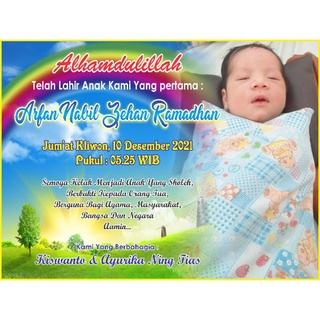 Beli banner kelahiran bayi / banner aqiqah / backdrop aqiqah / backdrop kelahiran bayi ( 1x1 meter ) terbaru di shopee.